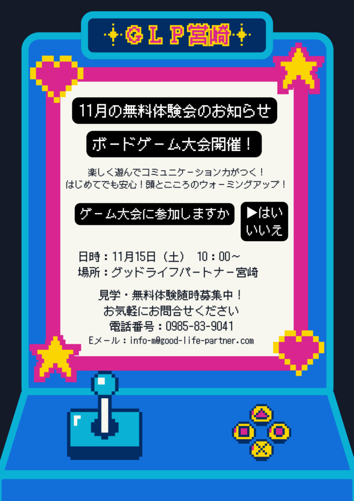 11月15日(土)に行われる無料体験会【ボードゲーム大会】のお知らせです✨