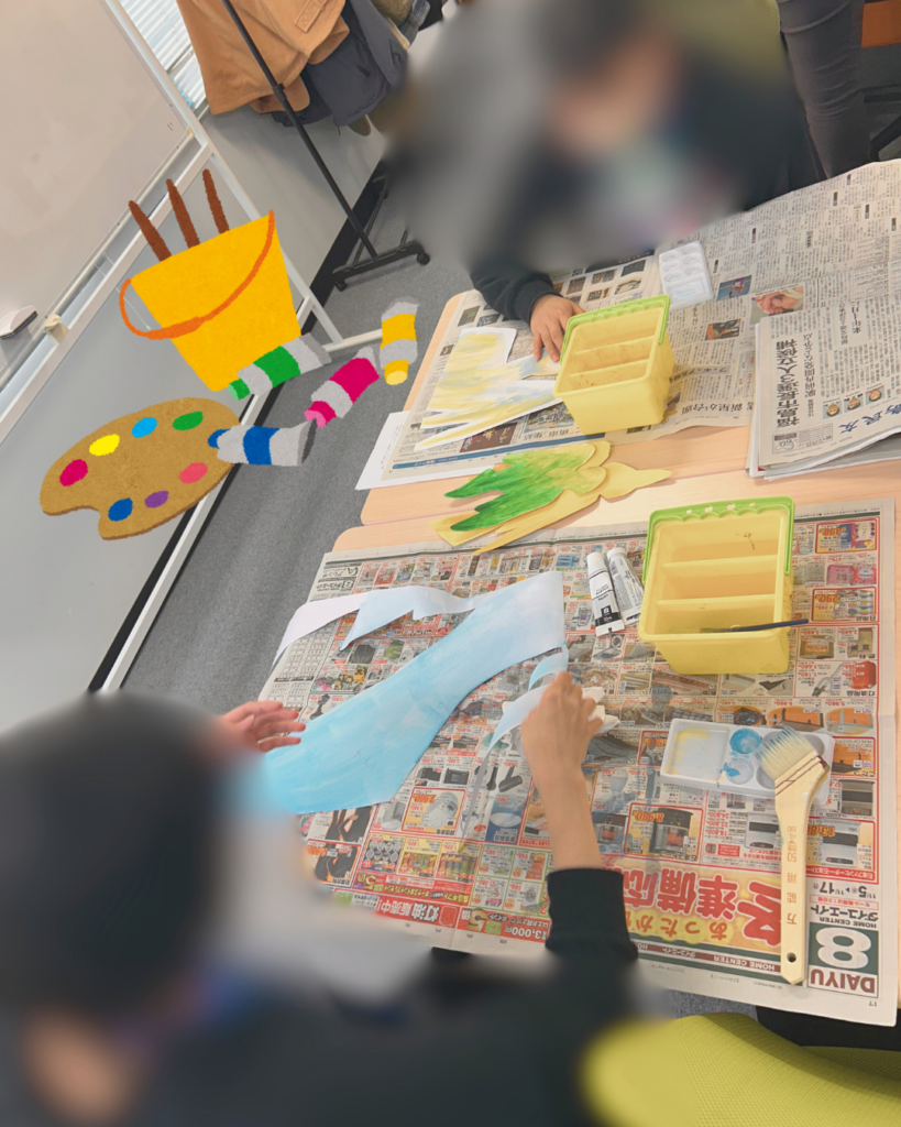 絵画班では、下絵を描いたり色の組み合わせを相談しながら少しずつ作品を仕上げています。