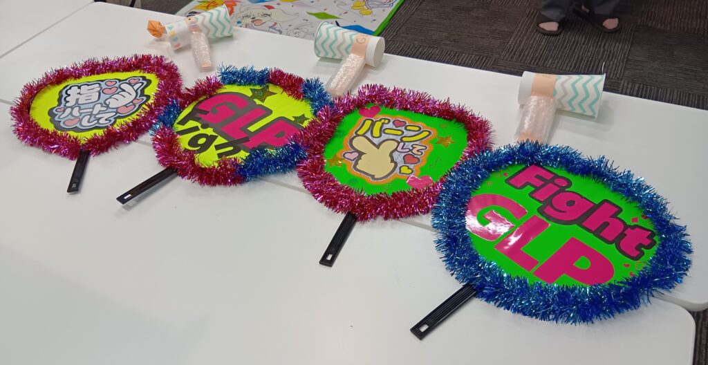 ここで、人気プログラムでもある軽作業の際に利用者さんが作成された自慢の応援グッズを