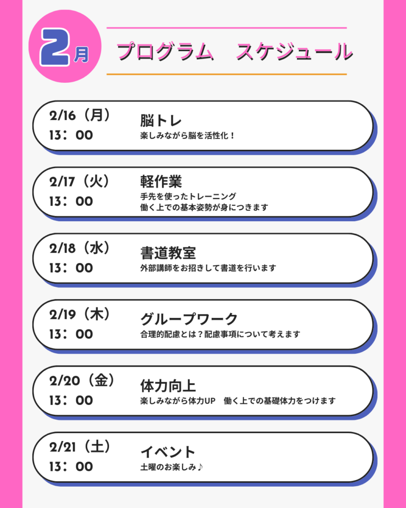 来週のプログラムをご紹介いたします😊