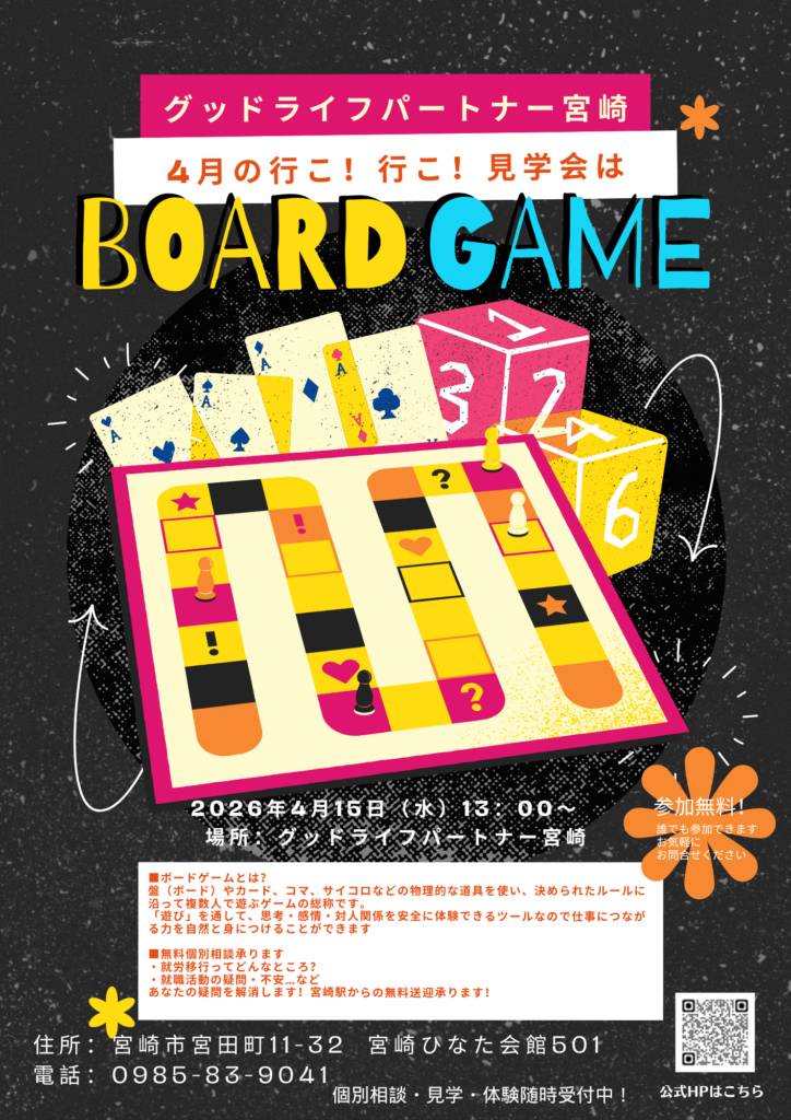 4月の見学会・体験会のイベントは【ボードゲーム大会】です!