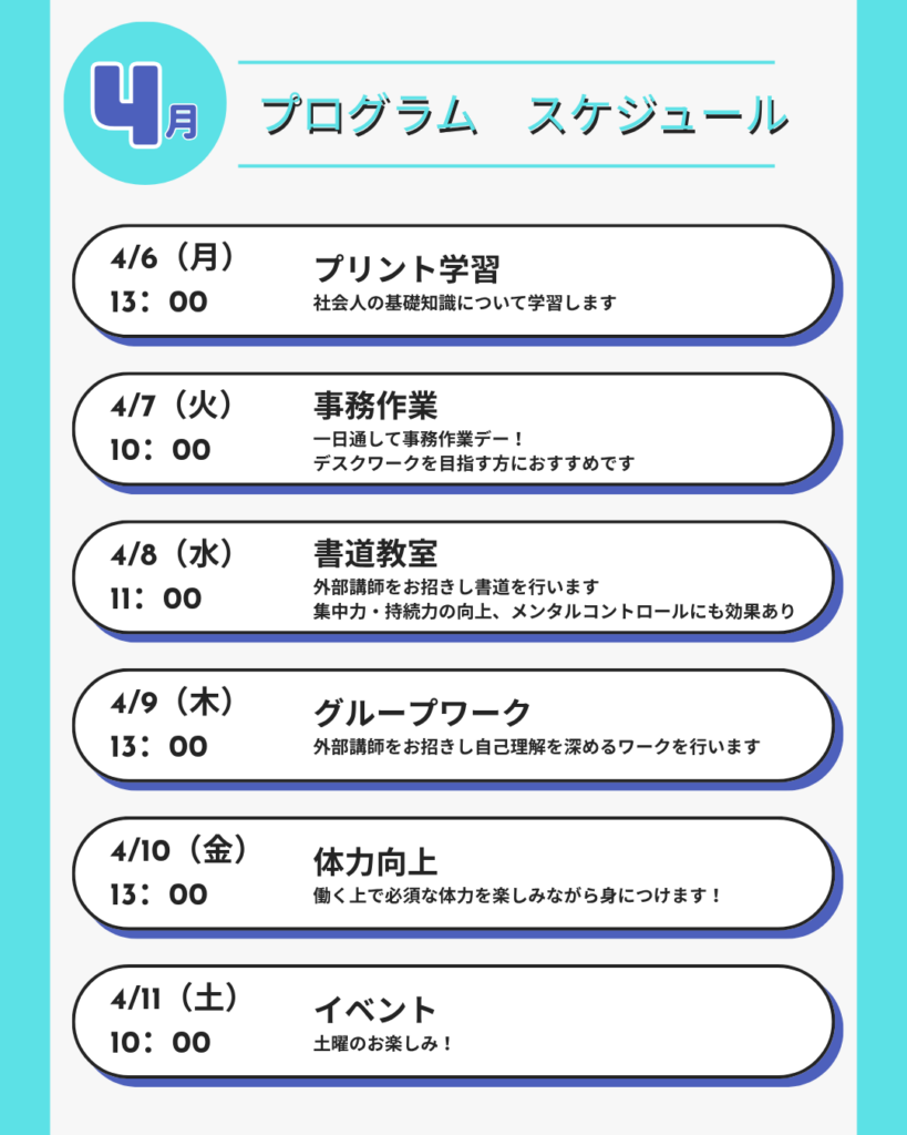 実際の就労場面をイメージしながら、時間を意識した作業や、正確さ・報連相を意識した取り組みを行います。